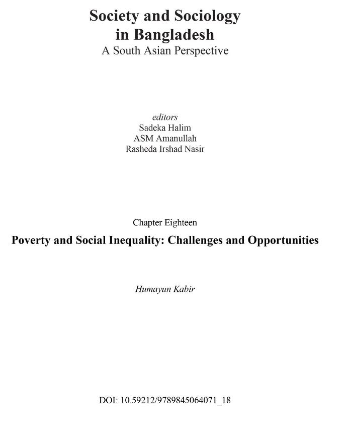 Kabir, Humayun, AU. Poverty and Social Inequality: Challenges and Opportunities. Dhaka, Bangladesh. https://dx.doi.org/10.59212/9789845064071_18