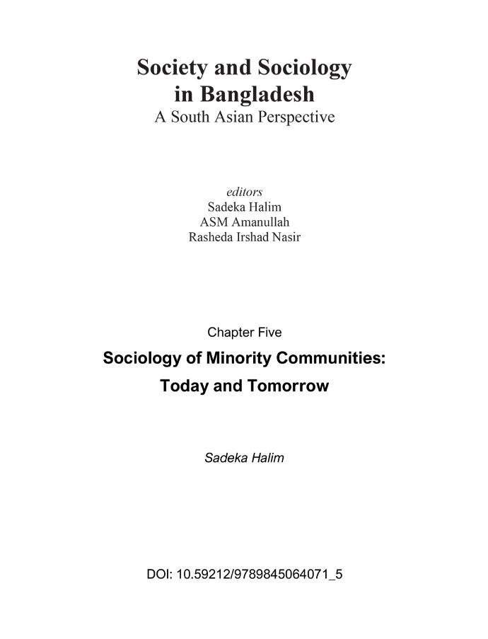 Halim, Sadeka, AU. Sociology of Minority Communities: Today and Tomorrow. Society and Sociology in Bangladesh: